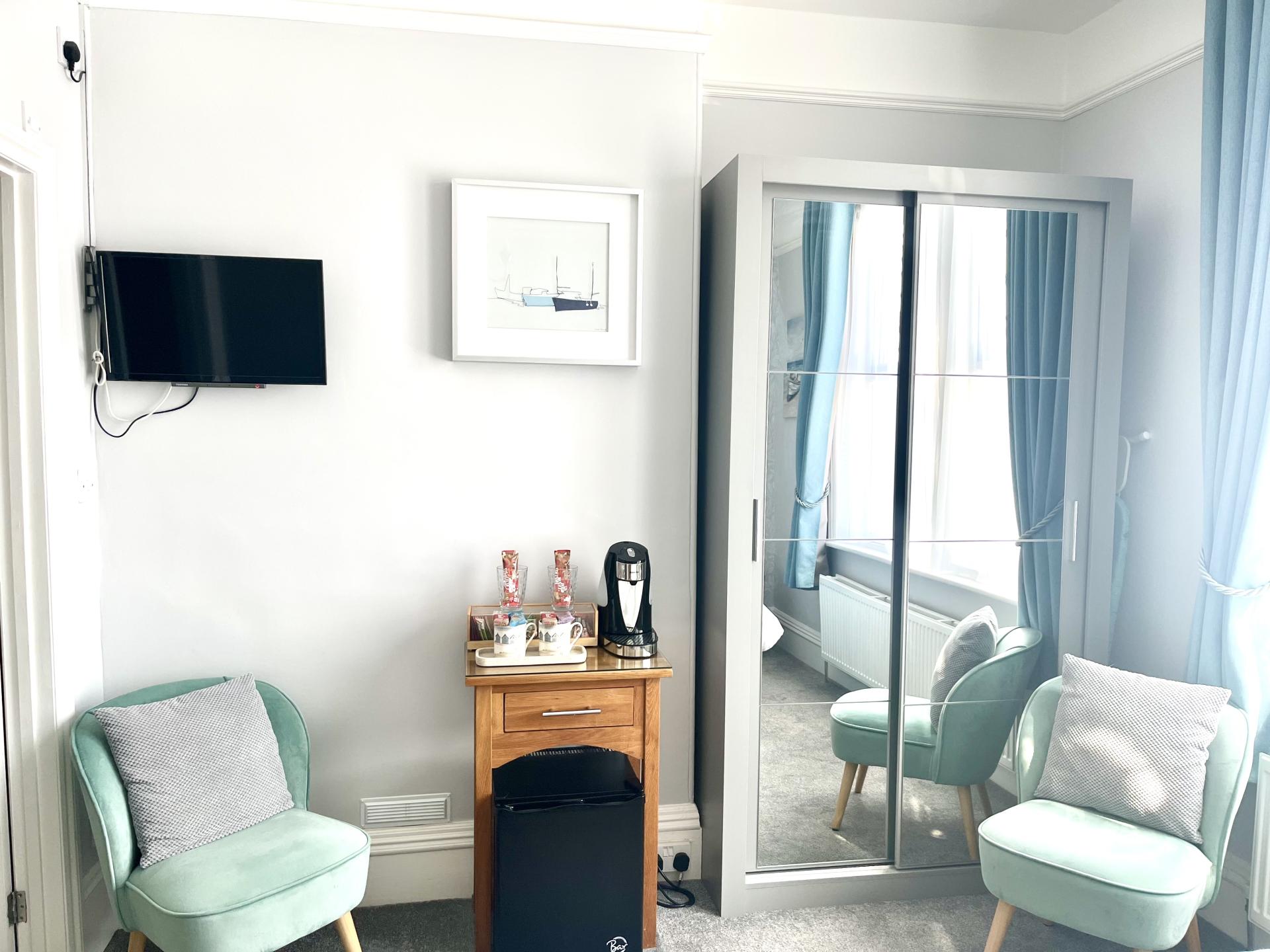 Room 5 is our superior double room situated downstairs with a lovely modern en-suite shower room. The luxury room offers a smart TV with Netflix,Amazon Echo Dot (Alexa), hairdryer, 23L silent fridge,iron and ironing board and a complementary hospitality tray. It is a lovely large spacious room with lots of light coming in from the large double window. Free WIFI is available through the house and garden.